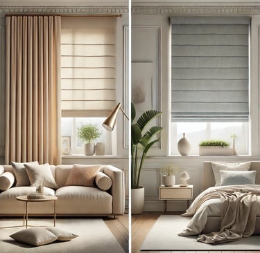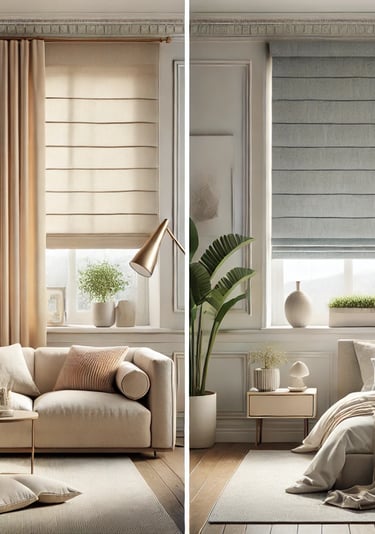 Elegant roman shades available in diverse fabrics, styles, and opacities to enhance your interior aesthetics, making them a timeless choice.